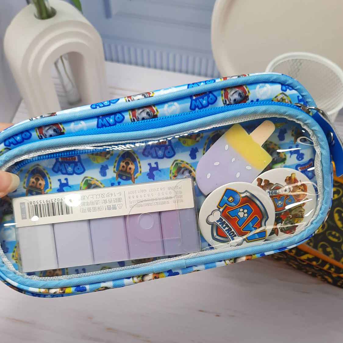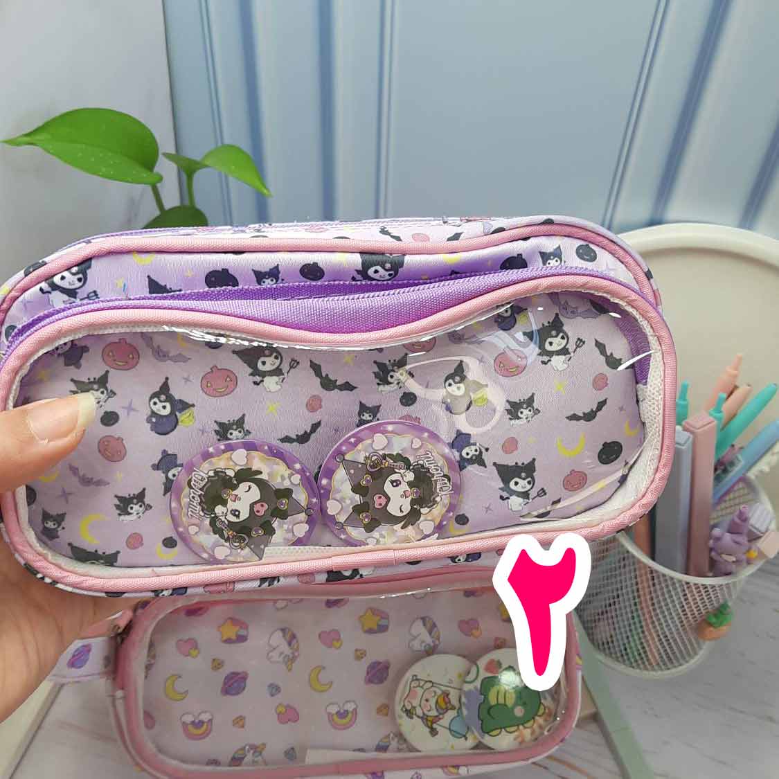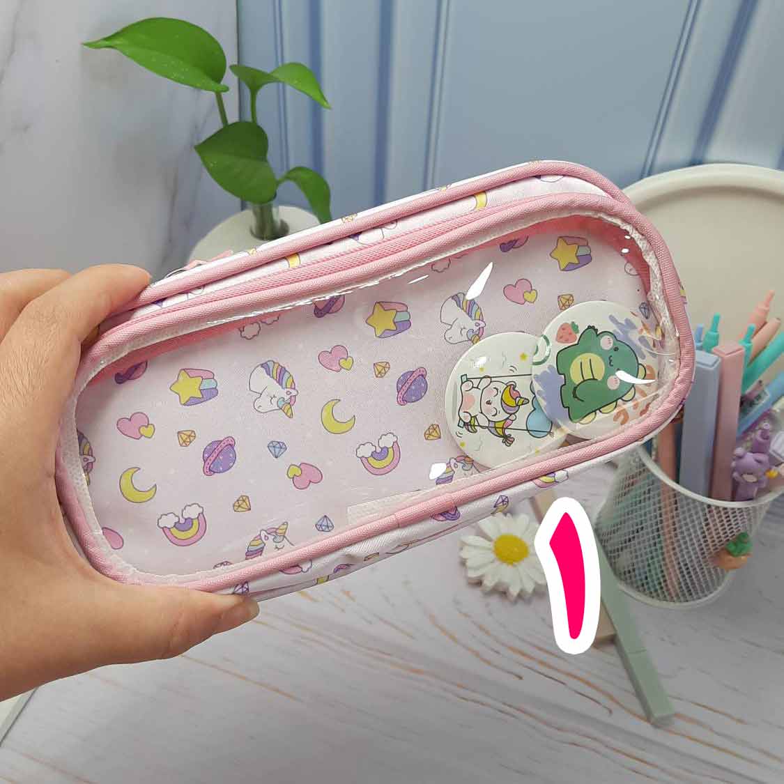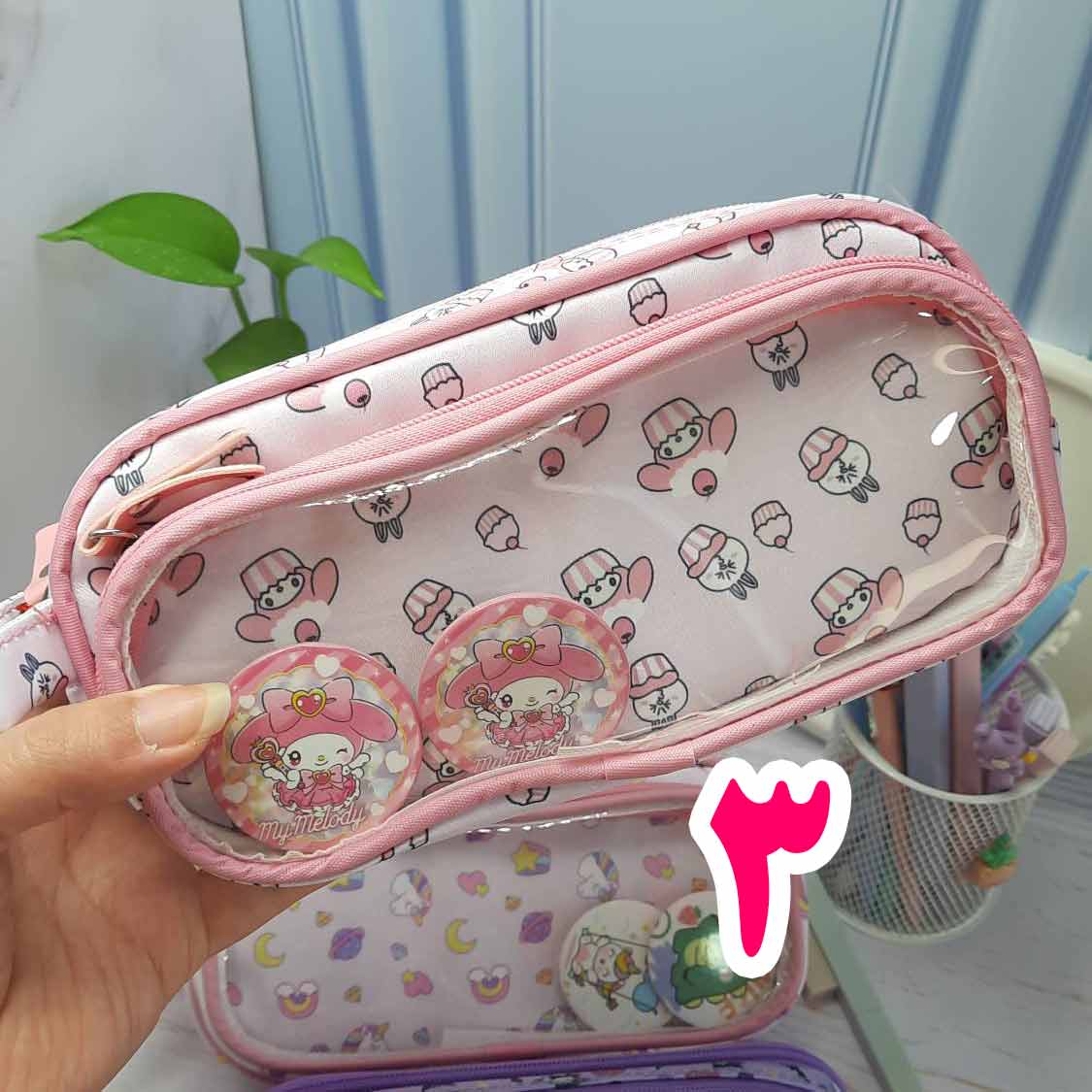 این جامدادی 3 تا زیپ با کیفیت داره و قسمت جلوییش از طلق شفافه و 2 تا پیکسل سوزنی داره که میتونی به کیفت یا لباست وصل کنی