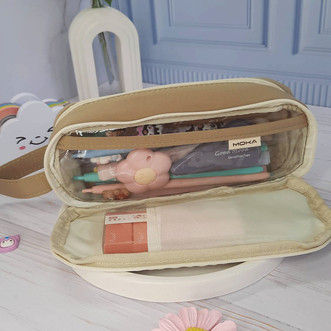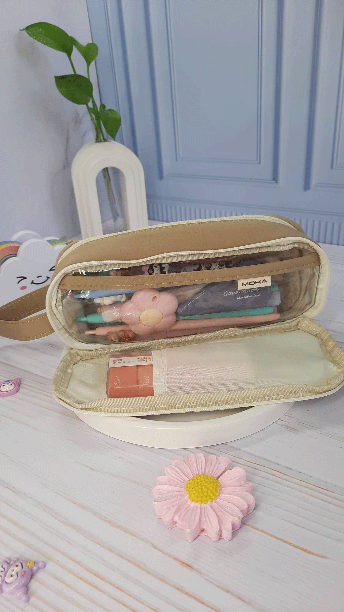 زیپ جلویی که باز میشه یه جیب داره که اگه وسایلاتونو توی جیبش بزارین دیده میشه چون که شفافه