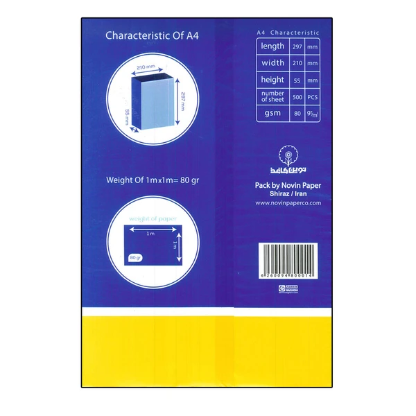وزن واقعی یک بسته کامل کاغذ A4 (۲۵۰۰ گرم) می باشد، درصورتی که برای کمتر شدن هزینه ارسال، وزن آن را در سایت برای " ارسال توسط پست " 300 گرم قرار داده ایم.
