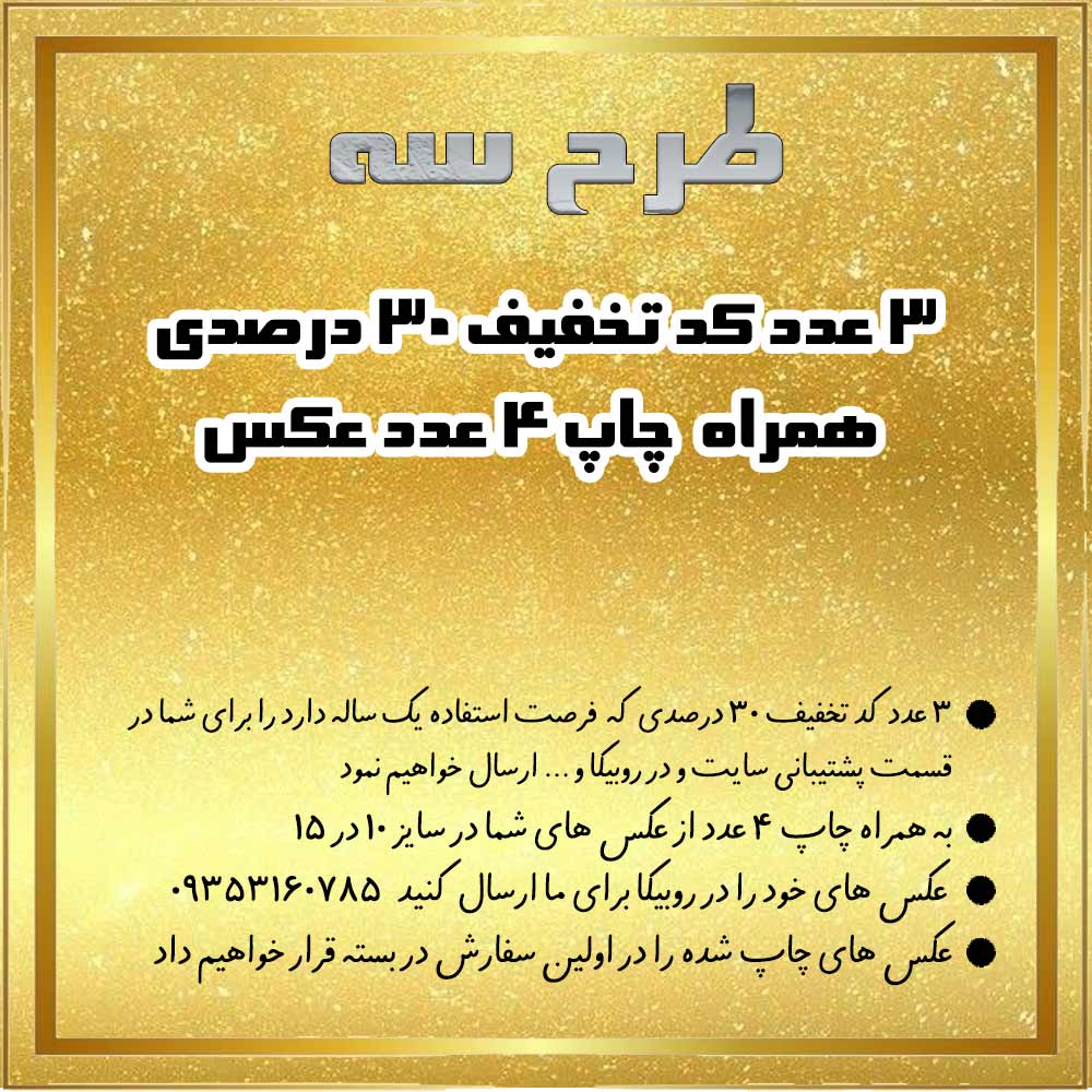 | طرح 3 | 3 عدد کد تخفیف 30 درصدی + چاپ ۴ عدد عکس ✅ |
