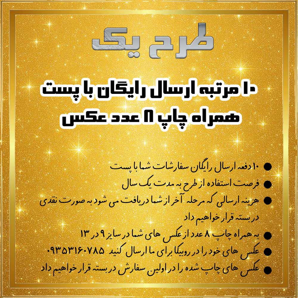 | طرح 1 | 10 مرتبه ارسال رایگان با پست + چاپ ۸ عدد عکس 🚚 |