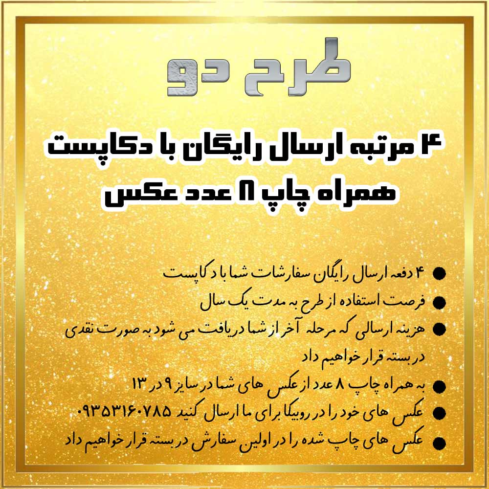 | طرح 2 | 4 مرتبه ارسال رایگان با دکاپست + چاپ ۸ عدد عکس 🚛 |