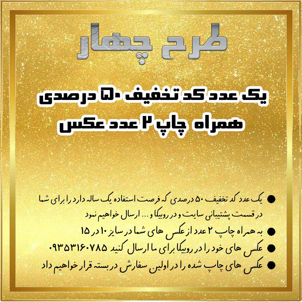 | طرح 4 | 1 عدد کد تخفیف 50 درصدی + چاپ ۲ عدد عکس ✅ |